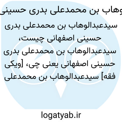[ویکی فقه] سیدعبدالوهاب بن محمدعلی بدری حسینی اصفهانی، از فضلاء اهل منبر اصفهان در قرن چهاردهم هجری بوده است.