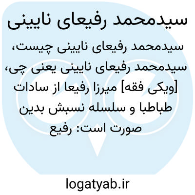 [ویکی فقه] میرزا رفیعا از سادات طباطبا و سلسله نسبش بدین صورت است: رفیع الدوله محمد فرزند حیدر، فرزند علی، فرزند سید بهاءالدین حیدر (ابی الفتوح)، فرزند کمال الدین حسن، فرزند شهاب الدین علی نقیب، فرزند فتوح الدین (ابوالمجد)، فرزند شهاب الدین علی، فرزند حمزه، فرزند اسحاق، فرزند طاهر، فرزند علی (ابوالحسن شهاب الدین)، فرزند محمد (ابوجعفر شهاب الدین، مدفون در مشهد)، فرزند احمد (ابی الفتوح)، فرزند محمد، فرزند احمد (احمد رئیس)، فرزند ابراهیم (طباطبای شاعر)، فرزند اسماعیل دیباج اکبر، فرزند ابراهیم (به لحاظ سخاوت زیاد به وی غمرمی گفتند)، فرزند حسن مثنی، فرزند امام حسن مجتبی علیه السلام، فرزند امام علی علیه السلام.
