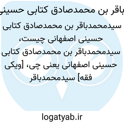 [ویکی فقه] سیدمحمدباقر کتابی بن سیدمحمدصادق بن حاج میرزا محمدتقی بن حاج میرزا محمدصادق کتاب فروش حسینی اصفهانی، دانشمند و ادیب معاصر در اصفهان می باشد.