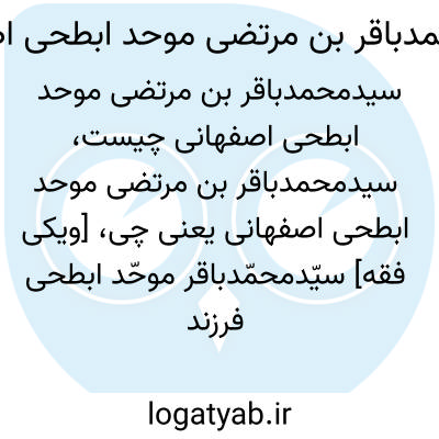 [ویکی فقه] سیّدمحمّدباقر موحّد ابطحی فرزند سیّدمرتضی، عالم فاضل و فقیه محقق معاصر در اصفهان می باشد.