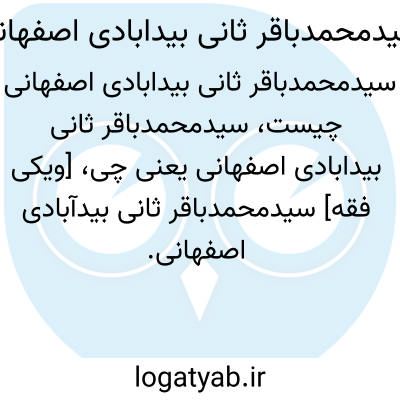 [ویکی فقه] سیدمحمدباقر ثانی بیدآبادی اصفهانی. سیّدمحمّدباقر ثانی بیدآبادی عالم فاضل فقیه کامل و ادیب و شاعر اصفهان می باشد.