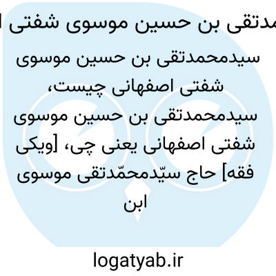 [ویکی فقه] حاج سیّدمحمّدتقی موسوی ابن آقا سیّدحسین بن آقا سیّدابوالقاسم بن حاج سیّدمحمّدعلی بن حاج سیّدمحمّدباقر حجّةالاسلام شفتی، از علماء و فضلاء اصفهان می باشد.