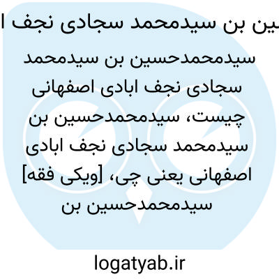 [ویکی فقه] سیدمحمدحسین بن سیدمحمد سجادی نجف آبادی اصفهانی. سیدمحمدحسین بن سیدمحمد سجادی نجف آبادی اصفهانی، عالم کامل در اصفهان و از شاگردان میرزای شیرازی و آخوند خراسانی بوده است.