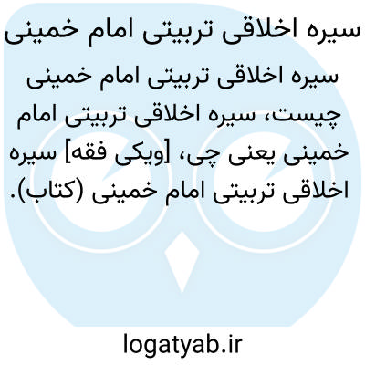 [ویکی فقه] سیره اخلاقی تربیتی امام خمینی (کتاب). «سیره اخلاقی- تربیتی امام خمینی رحمة الله علیه»، اثر فارسی علی اصغر الهامی نیا، تلاشی است در بیان و تبیین سیره اخلاقی- تربیتی امام خمینی رحمة الله علیه در عرصه عمل، گفتار و اندیشه ایشان.