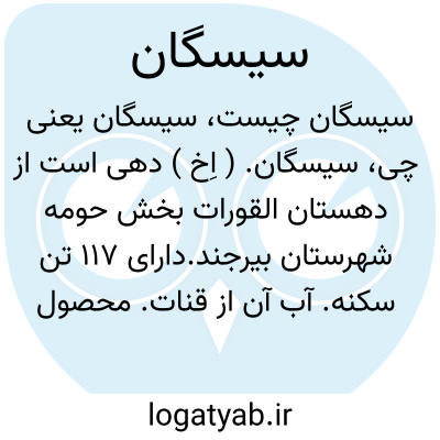 سیسگان. ( اِخ ) دهی است از دهستان القورات بخش حومه شهرستان بیرجند.دارای 117 تن سکنه. آب آن از قنات. محصول آنجا غلات،گردو و آلو است. ( از فرهنگ جغرافیائی ایران ج 9 ).