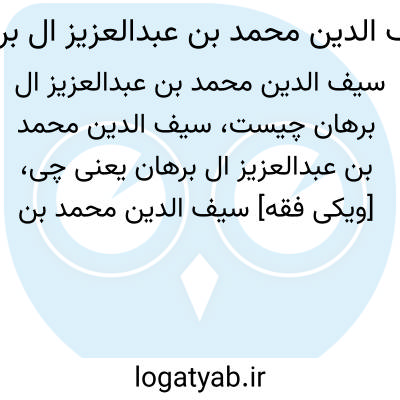 [ویکی فقه] سیف الدین محمد بن عبدالعزیز آل برهان. سیف الدین محمد بن عبدالعزیز، از عالمان و فقیهان آل برهان می باشد؛ این خاندان، خاندانی روحانی و سیاسی در ماوراءالنهر و بخارا در سده ۶ و ۷ق/۱۲ و ۱۳م بوده است.