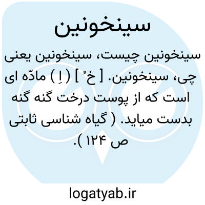 سینخونین. [ خ ُ ] ( اِ ) مادّه ای است که از پوست درخت گنه گنه بدست میاید. ( گیاه شناسی ثابتی ص 124 ). سنکونین.