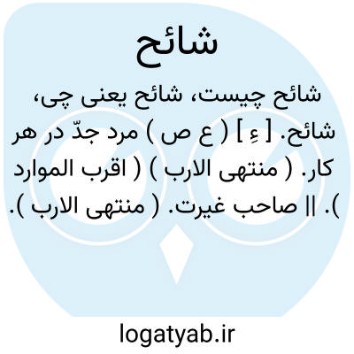 لغت نامه دهخدا شائح. [ ءِ ] ( ع ص ) مرد جدّ در هر کار. ( منتهی الارب ) ( اقرب الموارد ). || صاحب غیرت. ( منتهی الارب ). غیور. || حازم. || حَذِر. ( اقرب الموارد ). پرهیزگار. ( آنندراج ).. || نرم رونده. اسب سخت نفس. ( منتهی الارب ).شائح. [ ءِ ] ( اِخ ) کوهی است. ( منتهی الارب ).