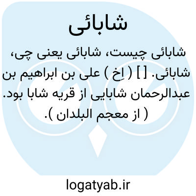 لغت نامه دهخدا شابائی. [ ] ( اِخ ) علی بن ابراهیم بن عبدالرحمان شابایی از قریه شابا بود. ( از معجم البلدان ).