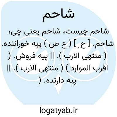 لغت نامه دهخدا شاحم. [ ح ِ ] ( ع ص ) پیه خوراننده. ( منتهی الارب ). || پیه فروش. ( اقرب الموارد ) ( منتهی الارب ). || پیه دارنده. ( منتهی الارب ).