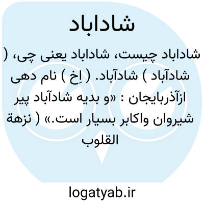 ( شادآباد ) شادآباد. ( اِخ ) نام دهی ازآذربایجان: «و بدیه شادآباد پیر شیروان واکابر بسیار است.» ( نزهة القلوب مقاله سوم ص 78 ).