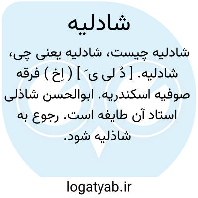 لغت نامه دهخدا شادلیه. [ دُ لی ی َ ] ( اِخ ) فرقه صوفیه اسکندریه. ابوالحسن شاذلی استاد آن طایفه است. رجوع به شاذلیه شود.