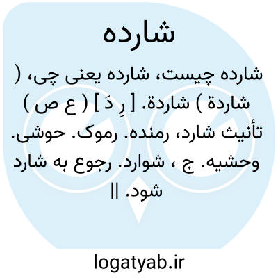 ( شاردة ) شاردة. [ رِ دَ ] ( ع ص ) تأنیث شارد، رمنده. رموک. حوشی. وحشیه. ج، شوارد. رجوع به شارد شود. || سائره: قافیه شاردة، بمعنی قصیده سائره در بلاد ومراد از قافیه در اینجا قصیده است باعتبار تسمیه کل بنام جزء. ج، شوارد و شُرَّد. ( اقرب الموارد ). || نادر و غریب: شوارداللغة در نزد عرب زبانان بمعنی غرائب و نوادر لغات است. ( از اقرب الموارد ).