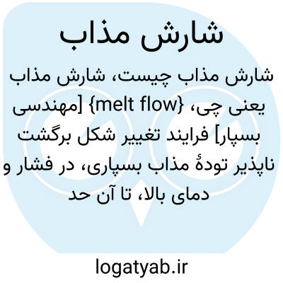 {melt flow} [مهندسی بسپار] فرایند تغییر شکل برگشت ناپذیر تودۀ مذاب بسپاری، در فشار و دمای بالا، تا آن حد که مولکول های بسپار بر روی هم بلغزند متـ. جریان مذاب