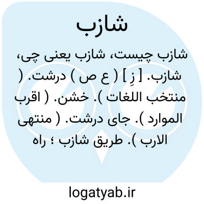 شازب. [ زِ ] ( ع ص ) درشت. ( منتخب اللغات ). خشن. ( اقرب الموارد ). جای درشت. ( منتهی الارب ). طریق شازب؛ راه درشت. ( ناظم الاطباء ). || خشک لاغر. ( منتخب اللغات ). صامر الیابس. ( اقرب الموارد ). لاغر و خشک از اسب و جز آن. ( منتهی الارب ). اسب باریک میان. ( شمس اللغات ). ج، شُزَّب، شَوازِب. ( از اقرب الموارد ).