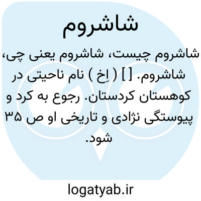 شاشروم. [ ] ( اِخ ) نام ناحیتی در کوهستان کردستان. رجوع به کرد و پیوستگی نژادی و تاریخی او ص 35 شود.