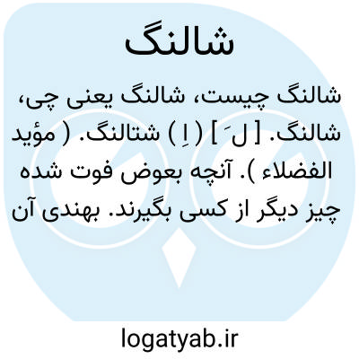 شالنگ. [ ل َ ] ( اِ ) شتالنگ. ( مؤید الفضلاء ). آنچه بعوض فوت شده چیز دیگر از کسی بگیرند. بهندی آن را «گهی » و در اردو «واند» گویند. ( از غیاث اللغات ) ( آنندراج ) ( از ناظم الاطباء ). تاوان. غرامت. || برجستن پیاده شاطران. ( آنندراج ). برجستگی و فروجستگی شاطران و پیاده روان. ( ناظم الاطباء ). شلنگ. ( حاشیه برهان چ معین ). رجوع به شلنگ شود. || گلیمی که زیرفرش و جز آن دوزند. ( فرهنگ نظام ) ( فرهنگ رشیدی ) ( از آنندراج ) ( فرهنگ سروری ). رجوع به شال شود. || نمد اسب. ( ناظم الاطباء ).
