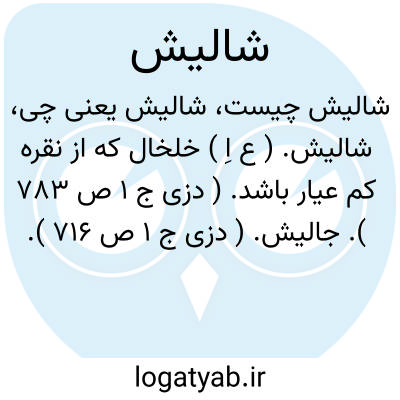 شالیش. ( ع اِ ) خلخال که از نقره کم عیار باشد. ( دزی ج 1 ص 783 ). جالیش. ( دزی ج 1 ص 716 ).