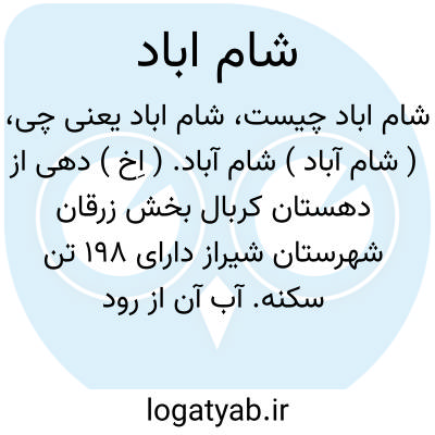 ( شام آباد ) شام آباد. ( اِخ ) دهی از دهستان کربال بخش زرقان شهرستان شیراز دارای 198 تن سکنه. آب آن از رود کر. محصول آن غلات، برنج و چغندر. شغل اهالی زراعت است. ( از فرهنگ جغرافیایی ایران ج 7 ).