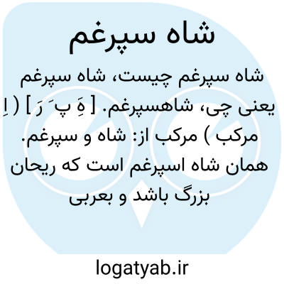 شاهسپرغم. [ هَِ پ َ رَ ] ( اِ مرکب ) مرکب از: شاه و سپرغم. همان شاه اسپرغم است که ریحان بزرگ باشد و بعربی ضیمران خوانند. ( برهان قاطع ) ( آنندراج ). ریحان. ( شرفنامه منیری ). نوعی ریحان بزرگ برگ. ( یادداشت مؤلف ):