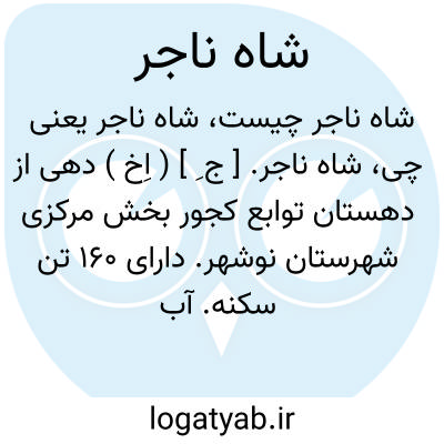 شاه ناجر. [ ج ِ ] ( اِخ ) دهی از دهستان توابع کجور بخش مرکزی شهرستان نوشهر. دارای 160 تن سکنه. آب آن از چشمه و رودخانه. محصول آن غلات و ارزن است. ( از فرهنگ جغرافیایی ایران ج 3 ).