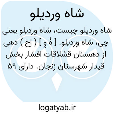 شاه وردیلو. [ هَْ وِ ] ( اِخ ) دهی از دهستان قشلاقات افشار بخش قیدار شهرستان زنجان. دارای 59 تن سکنه. آب آن از رودخانه. محصول آن غلات است. ( از فرهنگ جغرافیایی ایران ج 2 ).