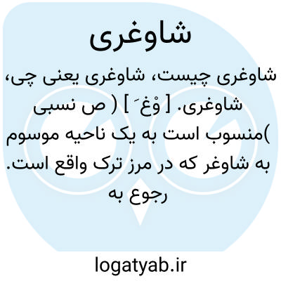 لغت نامه دهخدا شاوغری. [ وْغ َ ] ( ص نسبی )منسوب است به یک ناحیه موسوم به شاوغر که در مرز ترک واقع است. رجوع به شاوغری در الانساب سمعانی شود.