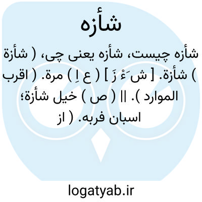 ( شأزة ) شأزة. [ ش َءْ زَ ] ( ع اِ ) مرة. ( اقرب الموارد ). || ( ص ) خیل شأزة؛ اسبان فربه. ( از اقرب الموارد ) ( منتهی الارب ).