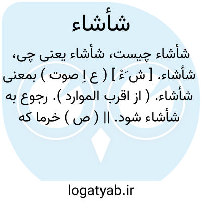 شأشاء. [ ش َءْ ش َءْ ] ( ع اِ صوت ) شاءْشاء. کلمه ای است که بدان خر را بسوی آب خوانند. ( از اقرب الموارد ) ( از منتهی الارب ) ( از تاج العروس ). || کلمه ای است که بدان گوسپند و خر را زجر کنند تا راه رود. ( از اقرب الموارد ). کلمه ای است که بدان خر را زجر کنند. ( از تاج العروس ). گوسپند و جز آن را زجر کنند تا درگذرد یا ایستاده شود. ( منتهی الارب ). و منه قولهم للبعیر! شأشاء لعنک اﷲ. و نیز رجوع به شاء شود. || ( ص ) خرما که دانه آن سخت نباشد و خرمابن دراز دارد. ( منتهی الارب ). شیص است و آن خرمای نیکویی نباشد. ( از تاج العروس ).