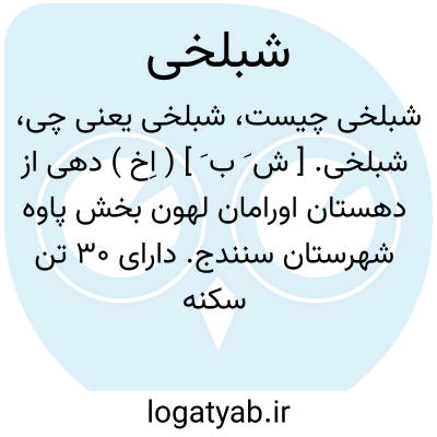 شبلخی. [ ش َ ب َ ] ( اِخ ) دهی از دهستان اورامان لهون بخش پاوه شهرستان سنندج. دارای 30 تن سکنه است. ( از فرهنگ جغرافیائی ایران ج 7 ).