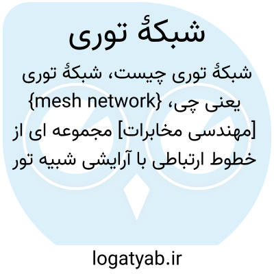 {mesh network} [مهندسی مخابرات] مجموعه ای از خطوط ارتباطی با آرایشی شبیه تور