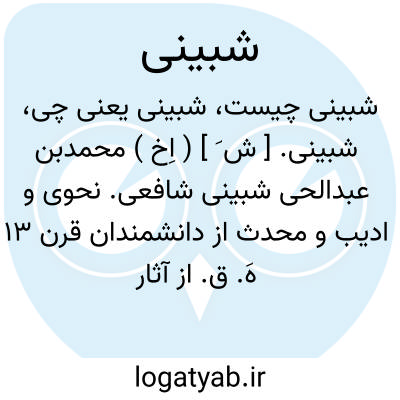 شبینی. [ ش َ ] ( اِخ ) ازدانشمندان اواخر قرن 13 هَ. ق. است. رجوع به علی بن جلبی شبینی شود. ( معجم المؤلفین ج 7 ص 54 و 107 ).