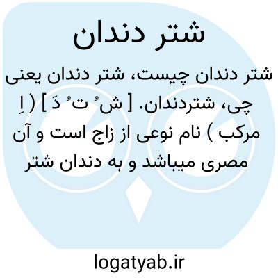 شتردندان. [ ش ُ ت ُ دَ ] ( اِ مرکب ) نام نوعی از زاج است و آن مصری میباشد و به دندان شتر میماند. گویند معتدل ترین زاجهاست. ( برهان ) ( از فرهنگ جهانگیری ) ( از انجمن آرا ) ( از آنندراج ). || قسمی گندم که در بعضی نقاط سیستان زراعت میشود. ( یادداشت مؤلف ).