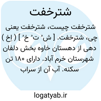 لغت نامه دهخدا شترخفت. [ ش ُ ت ُ خ ُ ] ( اِخ ) دهی از دهستان خاوه بخش دلفان شهرستان خرم آباد. دارای 180 تن سکنه. آب آن از سراب شترخفت و محصول آن غلات، توتون و لبنیات است. ( از فرهنگ جغرافیائی ایران ج 6 ).