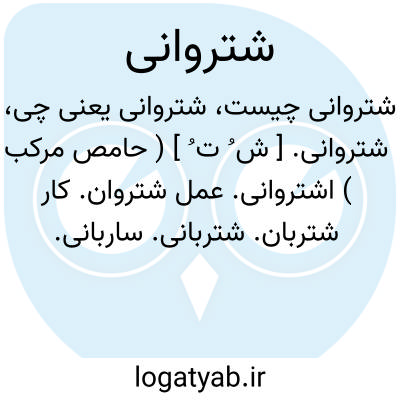 شتروانی. [ ش ُ ت ُ ] ( حامص مرکب ) اشتروانی. عمل شتروان. کار شتربان. شتربانی. ساربانی.