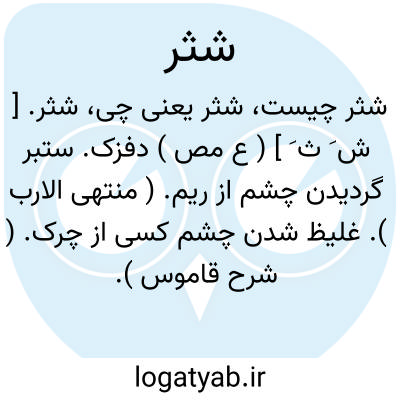 شثر. [ ش َ ث َ ] ( ع مص ) دفزک. ستبر گردیدن چشم از ریم. ( منتهی الارب ). غلیظ شدن چشم کسی از چرک. ( شرح قاموس ). درآمدن دانه های سرخ بر روی پلک چشم. ( از متن اللغة ).