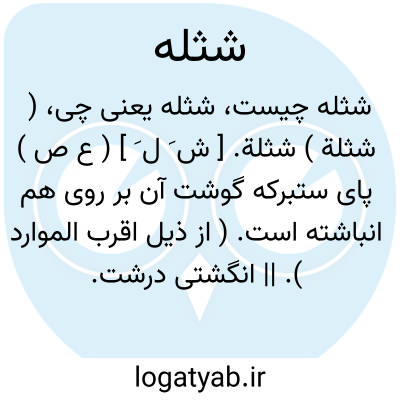 ( شثلة ) شثلة. [ ش َ ل َ ] ( ع ص ) پای ستبرکه گوشت آن بر روی هم انباشته است. ( از ذیل اقرب الموارد ). || انگشتی درشت. ( مهذب الاسماء ).