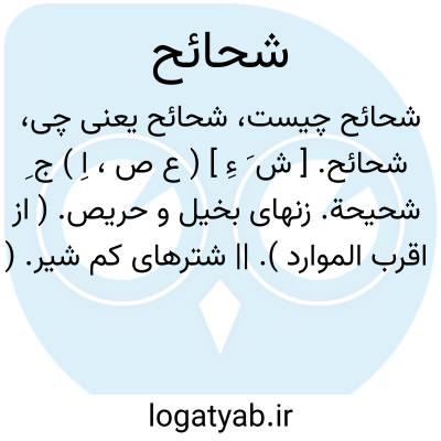 شحائح. [ ش َ ءِ ] ( ع ص، اِ ) ج ِ شحیحة. زنهای بخیل و حریص. ( از اقرب الموارد ). || شترهای کم شیر. ( از اقرب الموارد ) ( از منتهی الارب ): ابل شحائح؛ شتران کم شیر. ( از اقرب الموارد ). رجوع به شحیح و شحیحة شود.