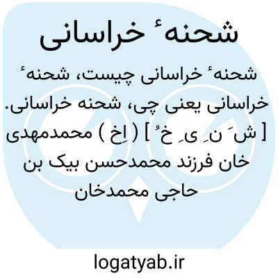 شحنه خراسانی. [ ش َ ن ِ ی ِ خ ُ ] ( اِخ ) محمدمهدی خان فرزند محمدحسن بیک بن حاجی محمدخان اوبهی. اصلش از خراسان و پدرش ساکن مازندران بود. در دوران نادرشاه افشار سمت دریابیگی مازندران و سپس دریابیگی شیراز را داشت و در اثر سعایت کور گردید و به اتفاق مهدیخان منشی الممالک به زیارت خانه خدا رفت و پس از مراجعت در سال 1247 هَ. ق. در اصفهان درگذشت و در مقبره ملامحمد سراب مدفون شد و از وی سه پسر ماند: محمدحسن بیک ( جد مادری رضاقلی خان هدایت مؤلف ریاض العارفین و مجمعالفصحاء ) که در هرات فوت شد و محمدحسن بیک و محمدرضابیک که در زمان مؤلف ریاض العارفین حیات داشته است. ( ریاض العارفین ص 262 ) ( مجمعالفصحاء ج 2 ص 252 ).