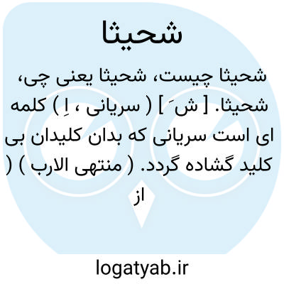 شحیثا. [ ش َ ] ( سریانی، اِ ) کلمه ای است سریانی که بدان کلیدان بی کلید گشاده گردد. ( منتهی الارب ) ( از اقرب الموارد ).