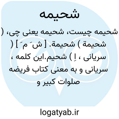 ( شحیمة ) شحیمة. [ ش َ م َ ] ( سریانی، اِ ) شحیم.این کلمه، سریانی و به معنی کتاب فریضه صلوات کبیر و صغیر است. ( از اقرب الموارد ). رجوع به شحیم شود.