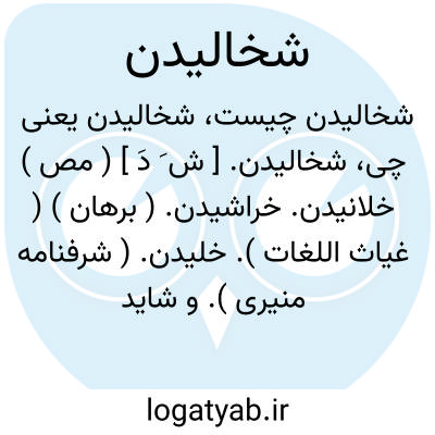 لغت نامه دهخدا شخالیدن. [ ش َ دَ ] ( مص ) خلانیدن. خراشیدن. ( برهان ) ( غیاث اللغات ). خلیدن. ( شرفنامه منیری ). و شاید تحریفی از شخائیدن باشد.