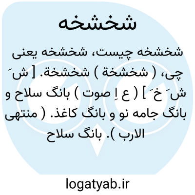 ( شخشخة ) شخشخة. [ ش َ ش َ خ َ ] ( ع اِ صوت ) بانگ سلاح و بانگ جامه نو و بانگ کاغذ. ( منتهی الارب ). بانگ سلاح وکاغذ و هر شی خشک چون خشخشه. ( از اقرب الموارد ).