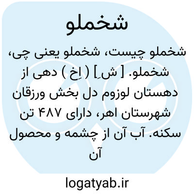 شخملو. [ ش ِ] ( اِخ ) دهی از دهستان گرمادوز بخش کلیبر شهرستان اهر. دارای 7 تن سکنه. آب آن از رودخانه سلین چای و محصول آن غلات است. ( از فرهنگ جغرافیائی ایران ج 4 ).