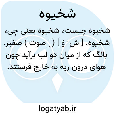 شخیوه. [ ش َ وَ ] ( اِ صوت ) صفیر. بانگ که از میان دو لب برآید چون هوای درون ریه به خارج فرستند.