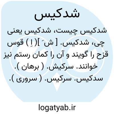 شدکیس. [ ش َ ]( اِ ) قوس قزح را گویند و آن را کمان رستم نیز خوانند. سرکیش. ( برهان ). سدکیس. سرکیس. ( سروری ). کمان سام. سویسه. سرویسه. ( سروری ). ککلم. ( برهان ) ( سروری ).