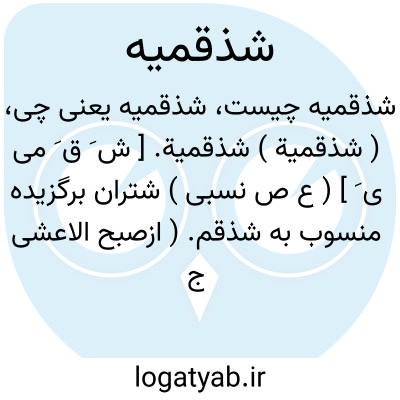 ( شذقمیة ) شذقمیة. [ ش َ ق َ می ی َ ] ( ع ص نسبی ) شتران برگزیده منسوب به شذقم. ( ازصبح الاعشی ج 2 ص 35 ). رجوع شود به شدقم و شدقمیات.