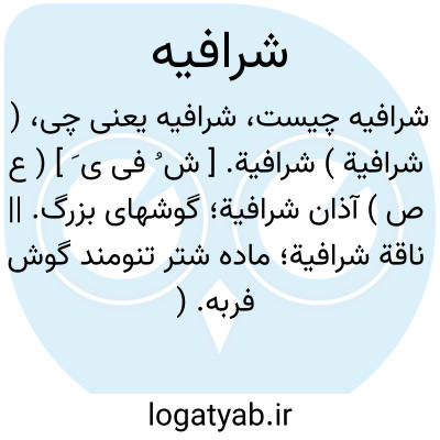 ( شرافیة ) شرافیة. [ ش ُ فی ی َ ] ( ع ص ) آذان شرافیة؛ گوشهای بزرگ. || ناقة شرافیة؛ ماده شتر تنومند گوش فربه. ( از اقرب الموارد ).