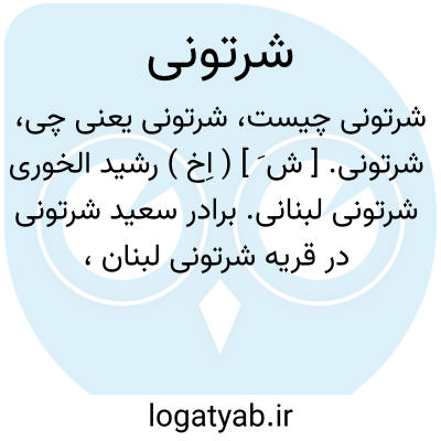 شرتونی. [ ش َ ] ( اِخ ) سعید الخوری الشرتونی لبنانی. به سال 1849م. متولد گردید. از ادیبان سوریه و خطیبان زبردست بود. تحصیلات خود را از مدرسه عُبَیَّة امریکایی آغاز نمود و مدت 15 سال در کالج یسوعیان و مدرسه راهبات ناصره بیروت درس میداد. او را تألیفات بسیاری است از جمله: اقرب الموارد در دو جلد به اضافه ذیل آن و حدائق المنثور و المنظوم. السهم الصائب. الشهاب الثاقب. مطالع الاضواء فی مناهج الکتاب و الشعراء. المعین فی صناعة الانشاء و نجدة الیراع. شرتونی در 1912 م. در قریه الشیاح از سواحل بیروت درگذشت. ( از معجم المطبوعات ).