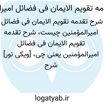 [ویکی نور] شرح تقدمه تقویم الایمان فی فضائل امیرالمؤمنین(ع). شرح تقدمة تقویم الإیمان فی فضائل أمیرالمؤمنین(ع) که گاه نیز به اشتباه از آن با عنوان «تقویم الإیمان» یاد شده است، شرح مبسوطی است به زبان عربی از خود میرداماد بر خطبه کتاب «تقویم الإیمان» خویش، در بیان و اثبات فضایل حضرت امیر(ع) با استناد به روایات